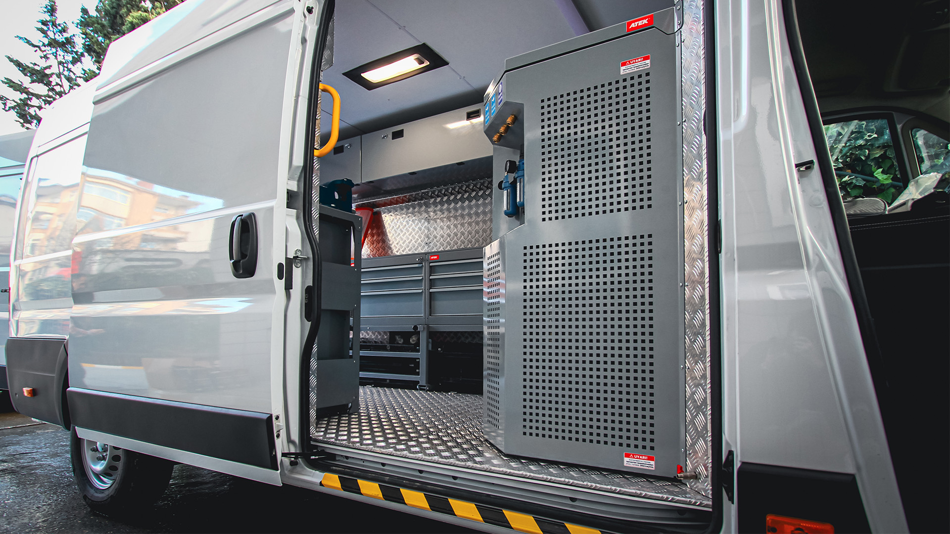 Mobil servis araçlarımız; daha hızlı müdahale, daha düzenli çalışma alanı ve sahada maksimum profesyonellik hedefleyen işletmeler için ideal bir çözümdür.