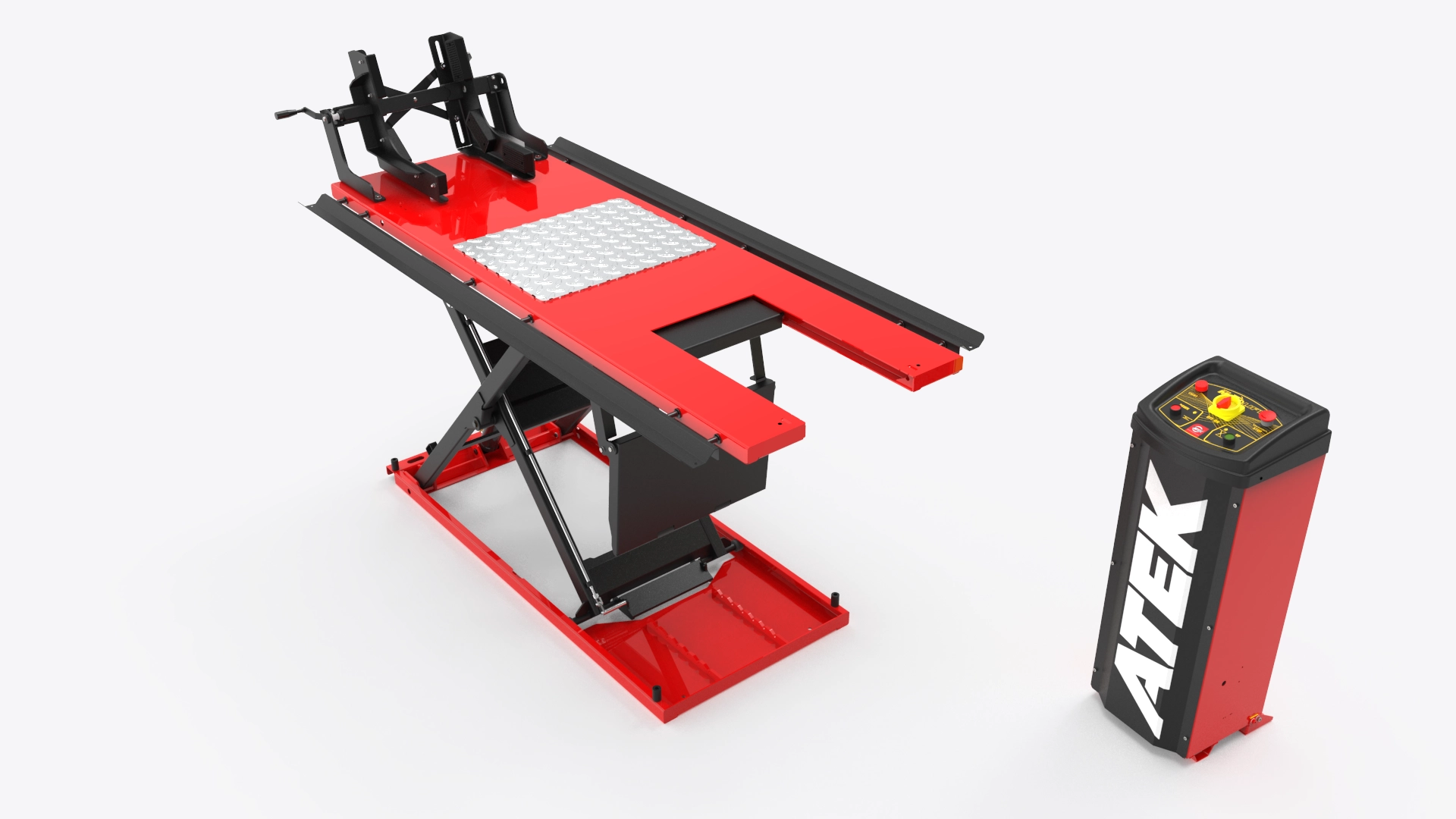 Minimum platform yüksekliği 140 mm, alçak şasiye sahip motosikletlerin kolaylıkla yerleştirilmesine olanak tanırken, maksimum kaldırma yüksekliği 1000 mm, ergonomik bir çalışma pozisyonu sağlar.